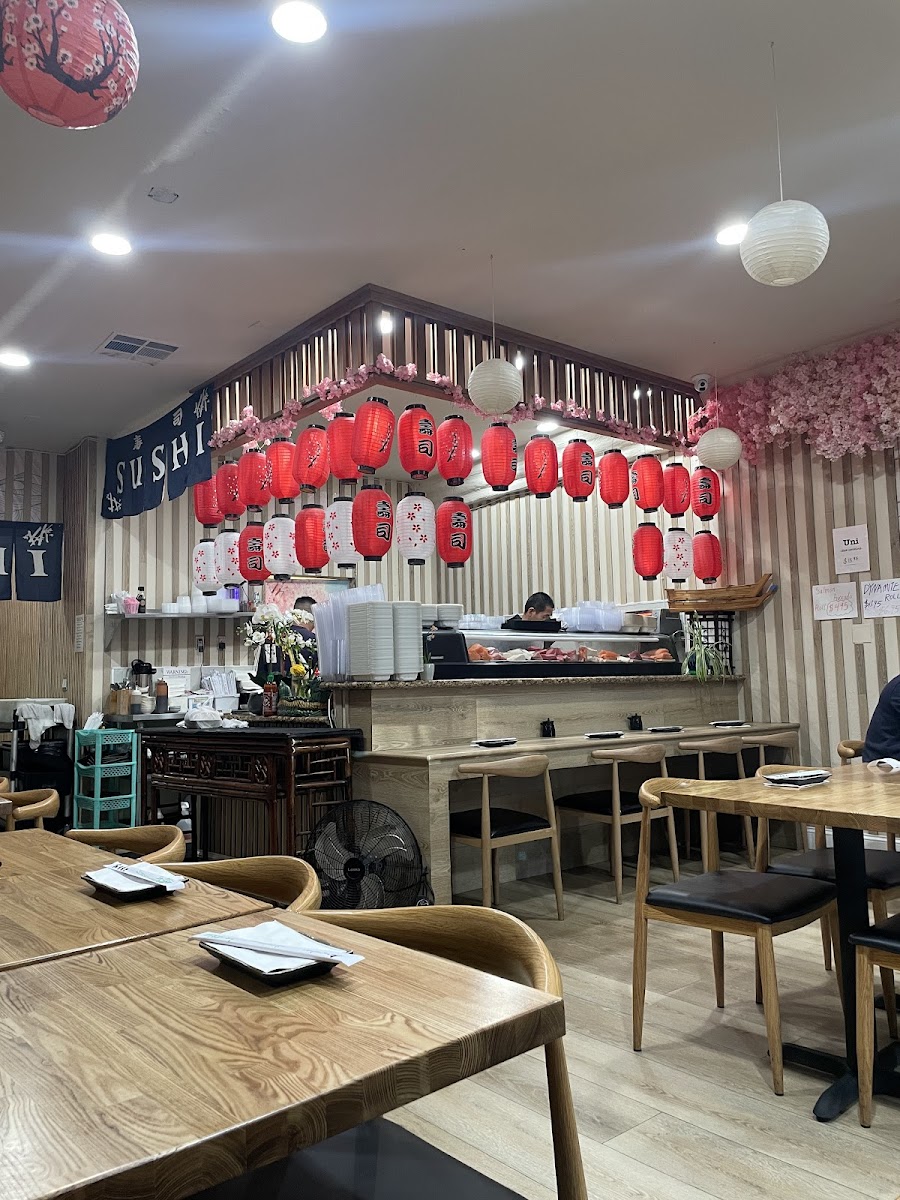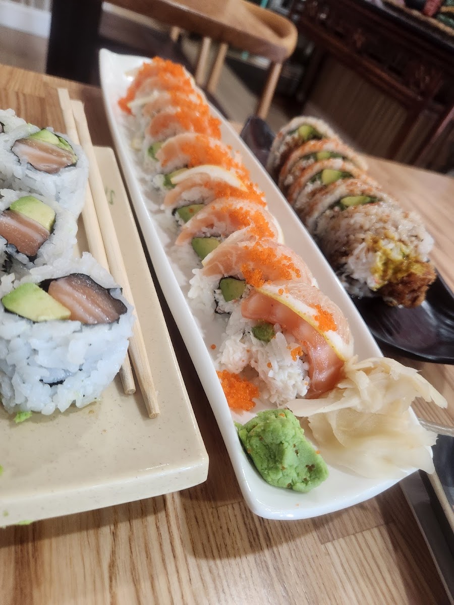 Walking in, we were immediately greeted and seated. I felt the ambiance was pleasant and inviting with all the decor and lanterns. The waiter and waitress were very friendly and attentive throughout our dinner, picking up empty plates as we ate and checked in on us if we needed anything. The place was empty when we first walked in but it soon became super busy as dinner time approached. We ordered the San Francisco Roll, Spicy Tuna Roll, Spicy Scallop Roll, and Salmon Avocado Roll. The salmon, tuna, and scallops tasted fresh and we scarfed down every last bit of rice off the plate. And that says a lot! I would come back again for sure.