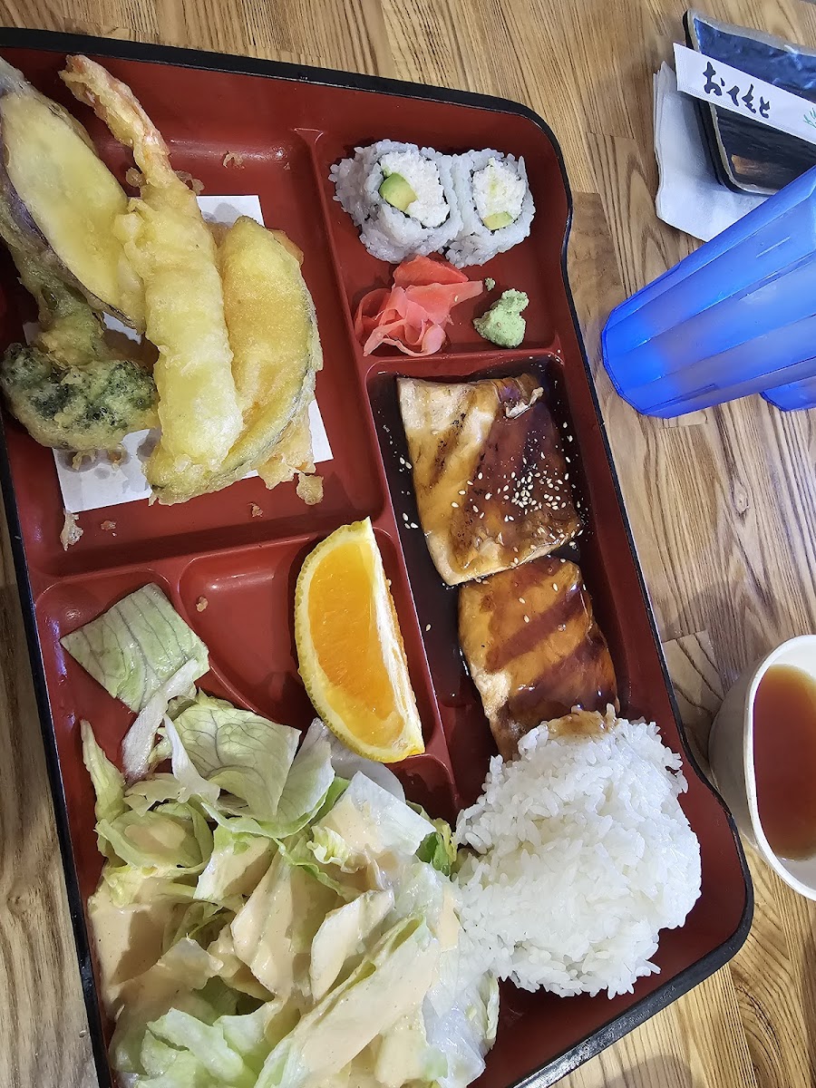 Simple no-frills restaurant with generous portions at incredibly reasonable prices. The perfect place for satisfying basic sushi cravings. Pros - The bento box at nine dollars is a steal and is great for going along with an additional sushi roll - Substitute the California roll for sashimi for an even better value, the sashimi cuts are thick - The amount of imitation crab the king roll needs to be seen to be believed. You can take some of it off and pair it with the bento or anything else you order Cons - The salad dressing on the salad for the bento box has peanuts in it so beware to those with allergies however if you let the server know they can get a substitute sauce for the salad - Personally wasn't a huge fan of the San Francisco roll, it pretty much just was a bunch of fish with sriracha drizzled on top Don't get your expectations too high if you're expecting high quality fish however the portions and price here are what make this place stand out. I'll definitely be back